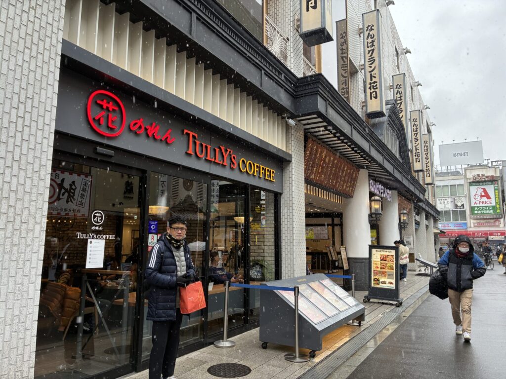 雪舞うNGK横、落ち着かない代表の上田