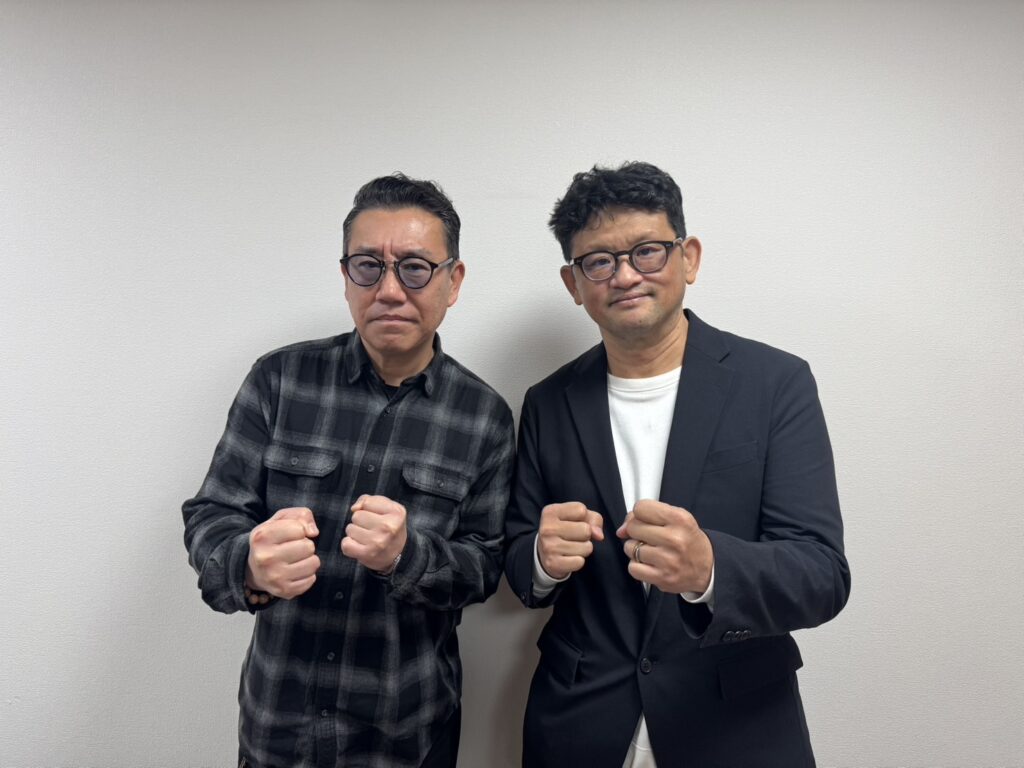 メッセンジャーあいはらさんと弊社上田は同学年ということもあり、同世代の表現者と経営者というそれぞれの立場から、今後の市場展望や事業継続への想いなど、深い対話が交わされました。